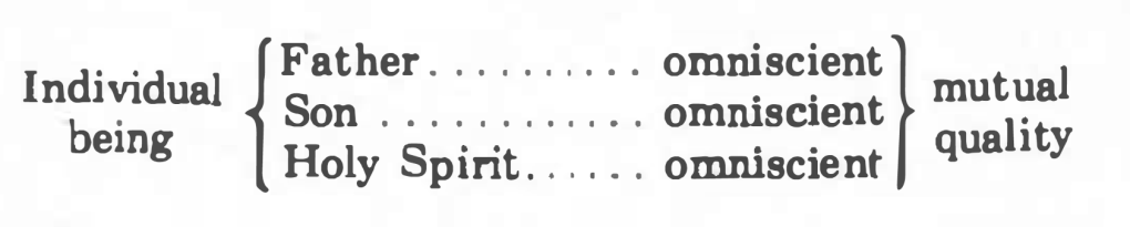 Eternally they possess the godhead, the dominion, and the power. They are Lord equal to the Lord God the Father. They are omniscient, omnipotent, and all-good just as the Father. The very fact that the Son and the Holy Spirit are omniscient, omnipotent, and all-good, as God the Father, from whom are all things, and the fact that they, as the Father, are equal in existence, intelligence, and will, witness and testify to the co-essentiality which exists among the Father, the Son, and the Holy Spirit, in the one essence and nature of God.