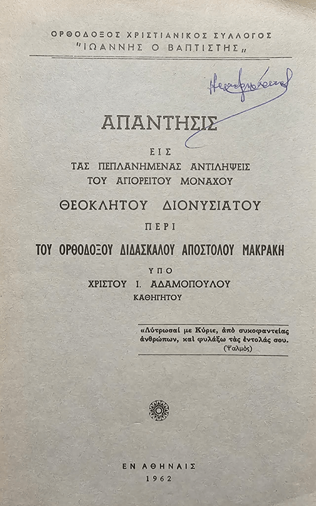 Few modern Greek Orthodox thinkers have generated as much controversy as Apostolos Makrakis. Though widely admired for his moral clarity and intellectual vigor, he has also been treated with suspicion—particularly by monastic critics who were uncomfortable with his analytic style and vigorous public preaching. Among these critics, the Athonite monk Theokletos Dionysiates stands out for the severity and longevity of his attacks.